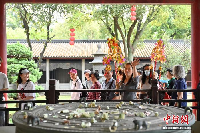 图为公众逛北海神庙祝福。中新社记者 旧楚白 摄