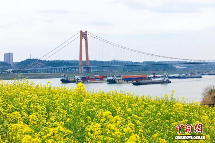 3月25日,湖北宜昌沿江二岸的油菜花田联贯开放,金黄色的花海取少江碧波相应成趣,组成1幅靓丽的秋日绘卷。没有少市平易近、乘客信步正在宜昌市面军区江边,摄影纪念,感触感染秋日气呼呼息。图为金黄花海取橘色年夜桥相应成趣。董晓斌 摄