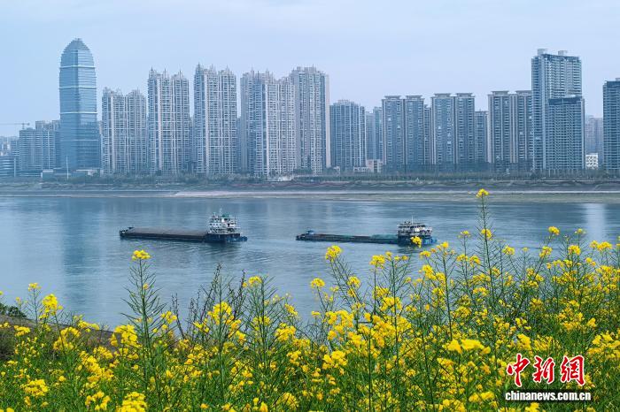 3月25日,湖北宜昌沿江二岸的油菜花田连续开放,金黄色的花海取少江碧波相应成趣,组成1幅靓丽的秋日绘卷。没有少市平易近、旅客信步正在宜昌市面军区江边,摄影纪念,感触感染秋日气呼呼息。图为油菜花画便宜昌秋日衰景。董晓斌 摄